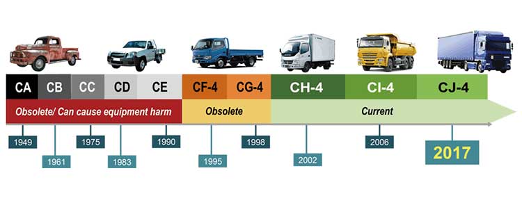 Các cấp chất lượng của API đối với động cơ chạy xăng là SA, SB, SC, SE, SF, SG,…và cấp mới nhất hiện nay là API SN. Đối với động cơ Diesel, API được ký hiệu là CA, CB, CC, CD…